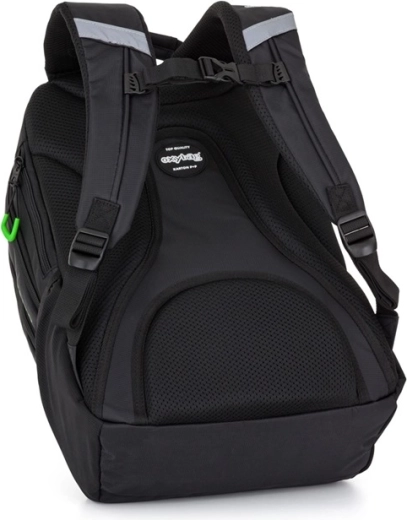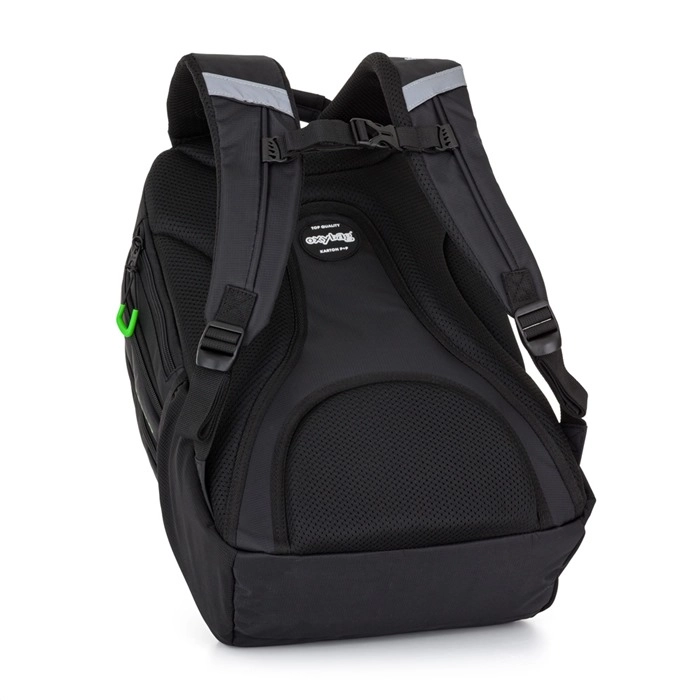 The interior is complemented by a reinforced laptop sleeve, a key clip, a small items pocket, and a hidden back pocket for valuables. There is also a side bottle pocket and reflective elements for safer movement at dusk. The set also includes a student pencil case for writing supplies with a practical elastic band and zipper.