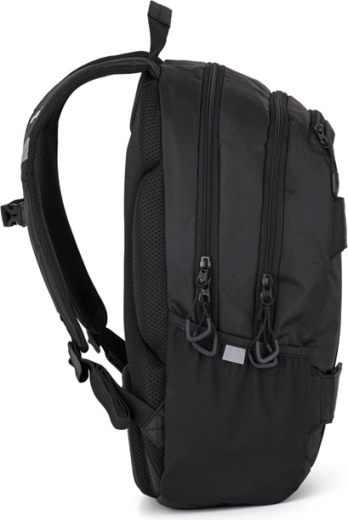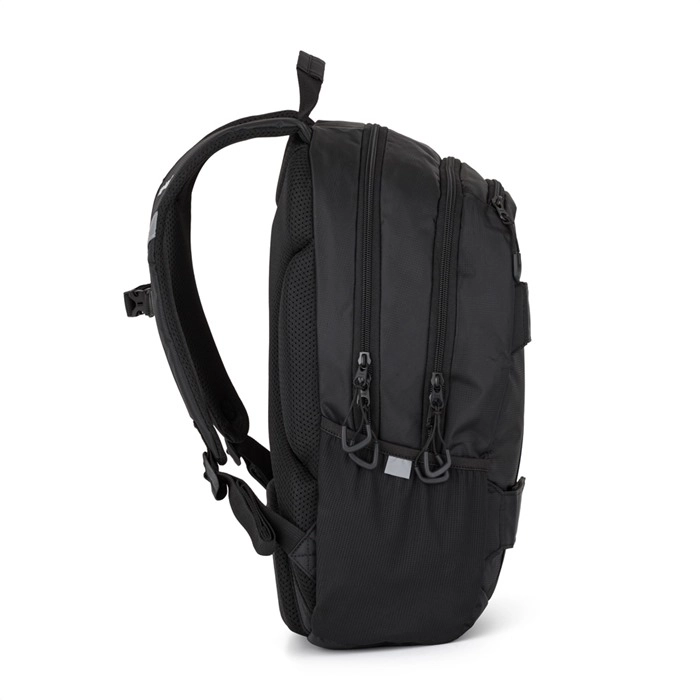 The shaped back panel, padded and adjustable shoulder straps, and chest strap ensure stable and comfortable carrying even when fully loaded.
