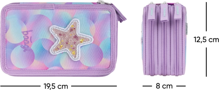 A stylish and extra-spacious three-tier BAAGL Candy pencil case keeps all writing supplies neatly in one place. It offers three separate compartments, elastic loops for thick crayons and markers, a reinforced spine for easy closing, and reliable YKK zippers. An ideal choice for students who want both organization and style. The pencil case is without contents.