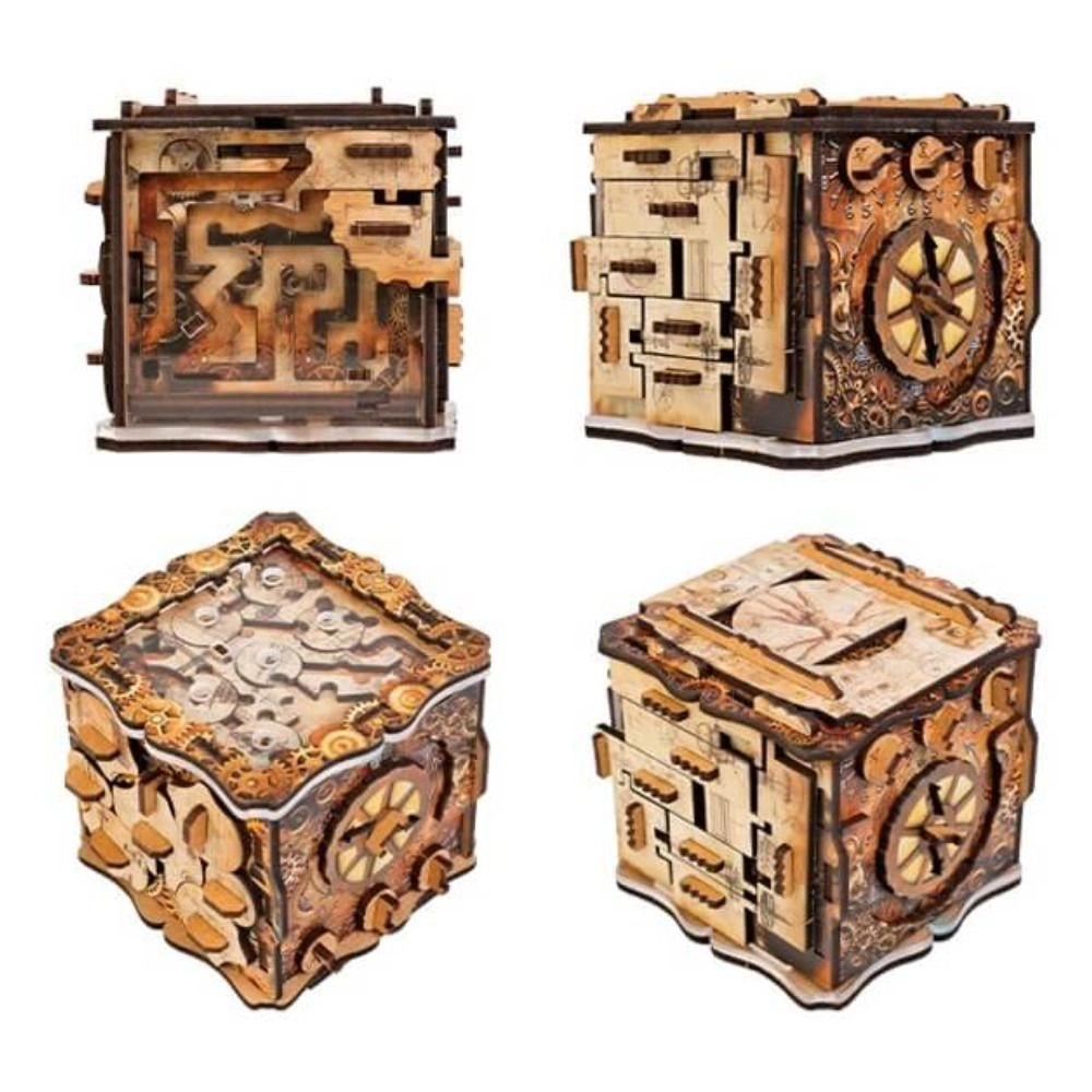 iQube Light is an original puzzle box that combines clever mechanisms, sliding elements, and secret locks into an immersive experience. You won’t need batteries or brute force to open it — just patience, logic, and deft fingers. Thanks to its elegant steampunk/technical look, it also stands out as a stylish interior decoration.