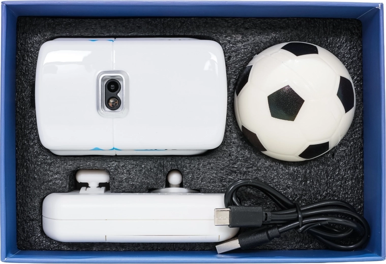 Discover a smart RC mini bus that can do much more than just drive forward and backward. Thanks to its sensors, it detects obstacles and avoids them, can track hand movements and the included ball, and entertains with LED animations of cute expressions and hearts. Control is easy — either with the comfortable remote controller or via gestures.