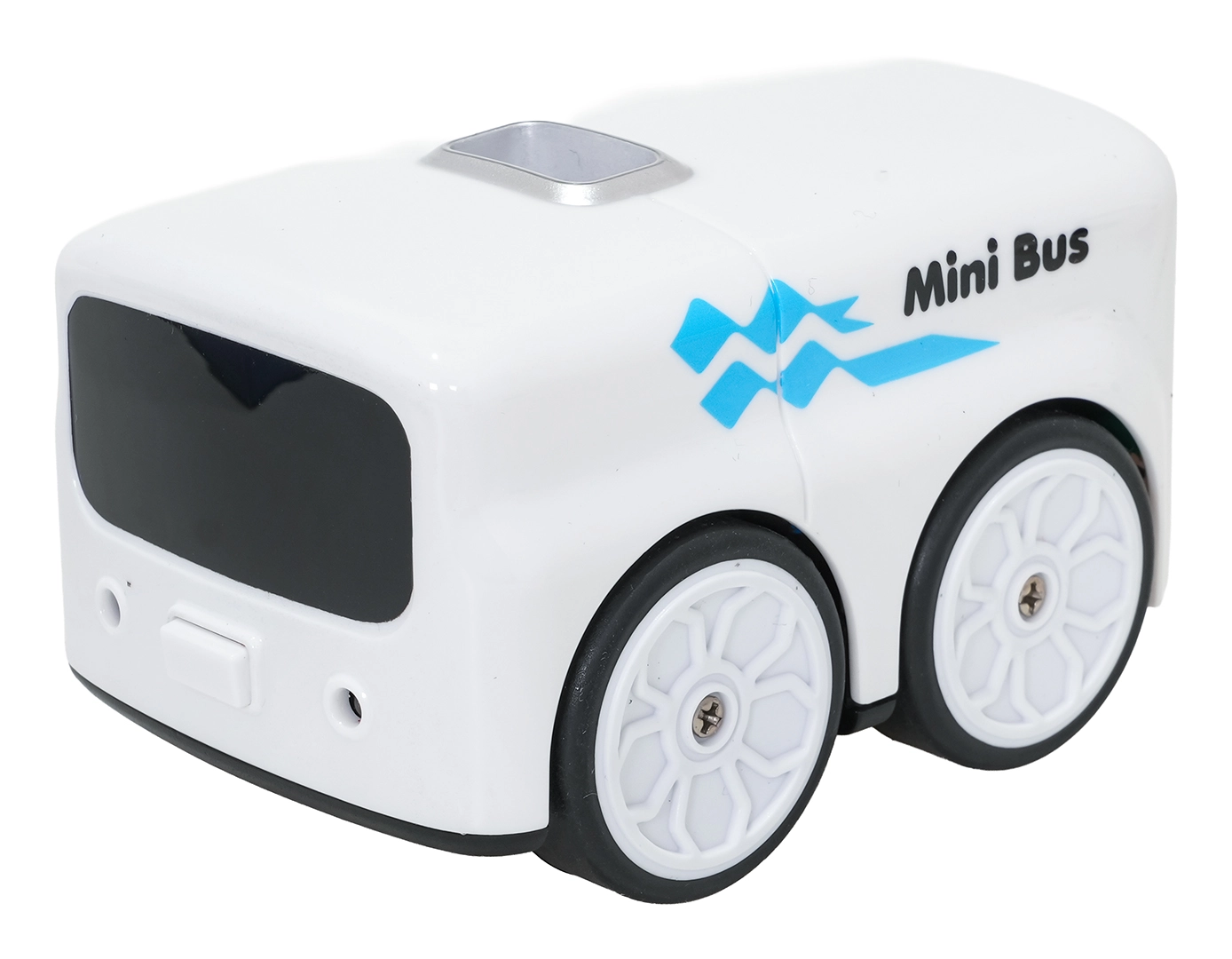 The bus detects obstacles, follows a line and the included ball, and can perform 360° spins — safe and action-packed indoor driving.