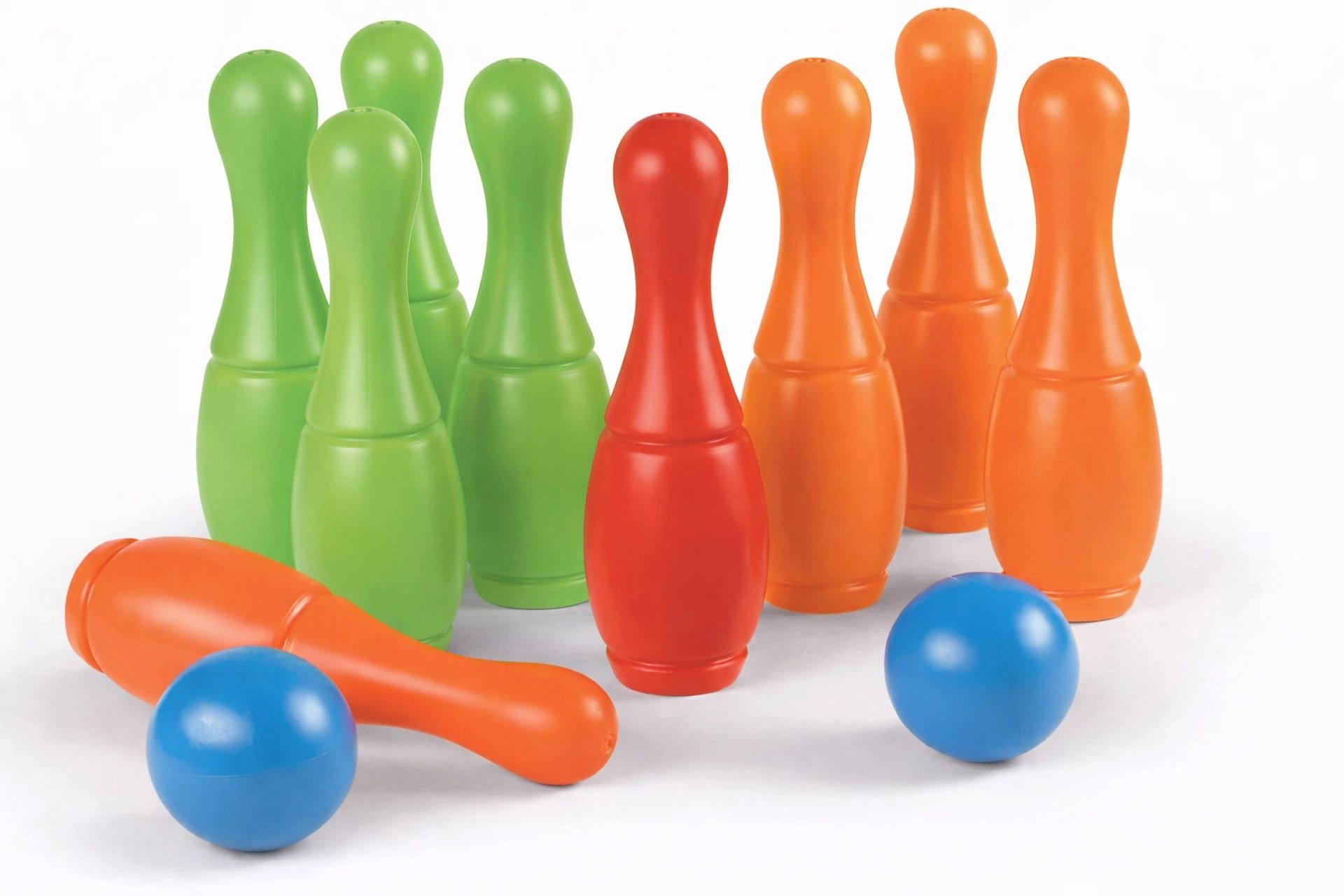A fun ANDRONI bowling set for kids and adults, featuring 9 colorful pins and 2 fillable balls. For better stability, you can fill them with water or sand. Quality Italian craftsmanship and a safe grip guarantee lots of fun indoors and outdoors.