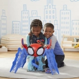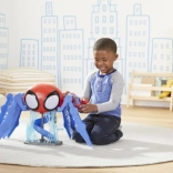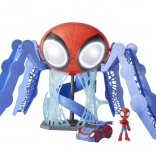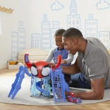 Experience an epic web-slinging adventure with this Spider Base playset, inspired by the Disney Junior series Spidey and His Amazing Friends! You’ll see this incredible Spider Base in every episode of the show. It looks like a giant spider, with four huge legs that you can easily bend to create ramps where vehicles can make awesome stops. The Spider Base features lights and sounds and is compatible with other vehicles from Spidey and His Amazing Friends. Every character has a unique spot here, such as a spider lab, a detective office, or even a jail. There’s plenty of room for Spider-Man and his friends to tackle their missions together! The playset includes a 10 cm Spider-Man figure and a spider motorcycle.