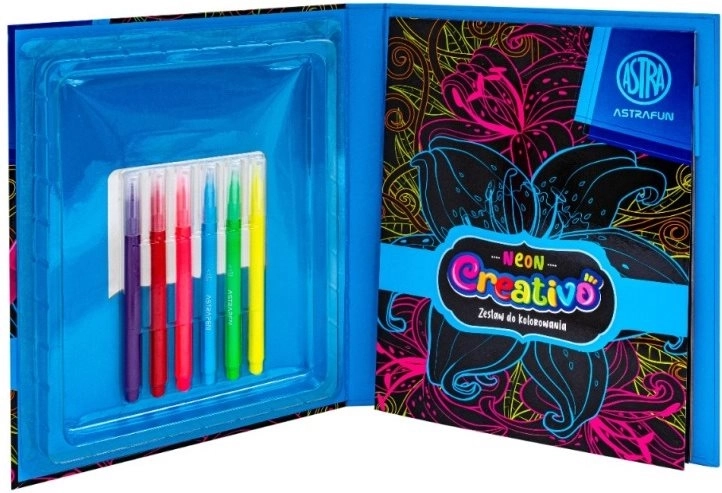 Discover the relaxing Astra Creativo Neon Flowers coloring set that delights both children and adults. It includes pre-drawn designs and 6 bold neon shades for bright, vibrant, and excellent coverage coloring. The set supports imagination, focus, and creativity and is perfect for rest and relaxation any time of day.