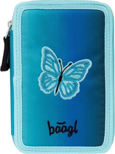 Extra spacious three-tier BAAGL pencil case with a Butterfly motif offers maximum order, clear organization, and reliable YKK zippers. Thanks to the elastic loops for thick pencils and markers and the reinforced spine, it’s easy to use every day. Made in accordance with the Global Recycled Standard (GRS). The pencil case is unfilled.