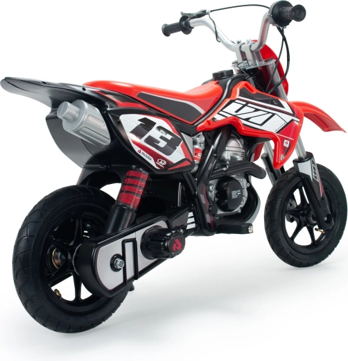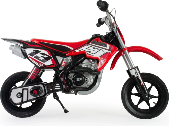 Give kids the feeling of a real motocross track. The INJUSA electric bike with a 24V battery, pneumatic tires, and a metal chassis offers stability, comfort, and a safe speed of 11–12 km/h. A smooth twist-grip throttle, effective drum brake system, and sporty red design will thrill every young rider.