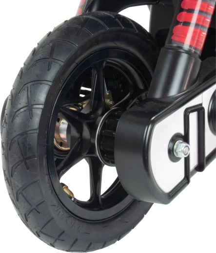 The bike is ideal for children from 6 years and supports up to 40 kg. A safe top speed of 11–12 km/h and a practical side kickstand make parking after the ride easy. The red racing finish with realistic details fuels children’s imagination and enthusiasm for fresh-air fun.