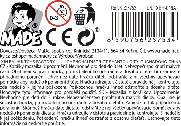 Discover a world of creativity with this bead mosaic for kids aged 6+. Thanks to the practical storage box, the set is easy to store, the durable plastic material ensures long-lasting use, and the single coordinated set of bead colors and types supports focus and sparks imagination. Perfect especially for girls who love crafting and want to enjoy hours of fun and creativity.