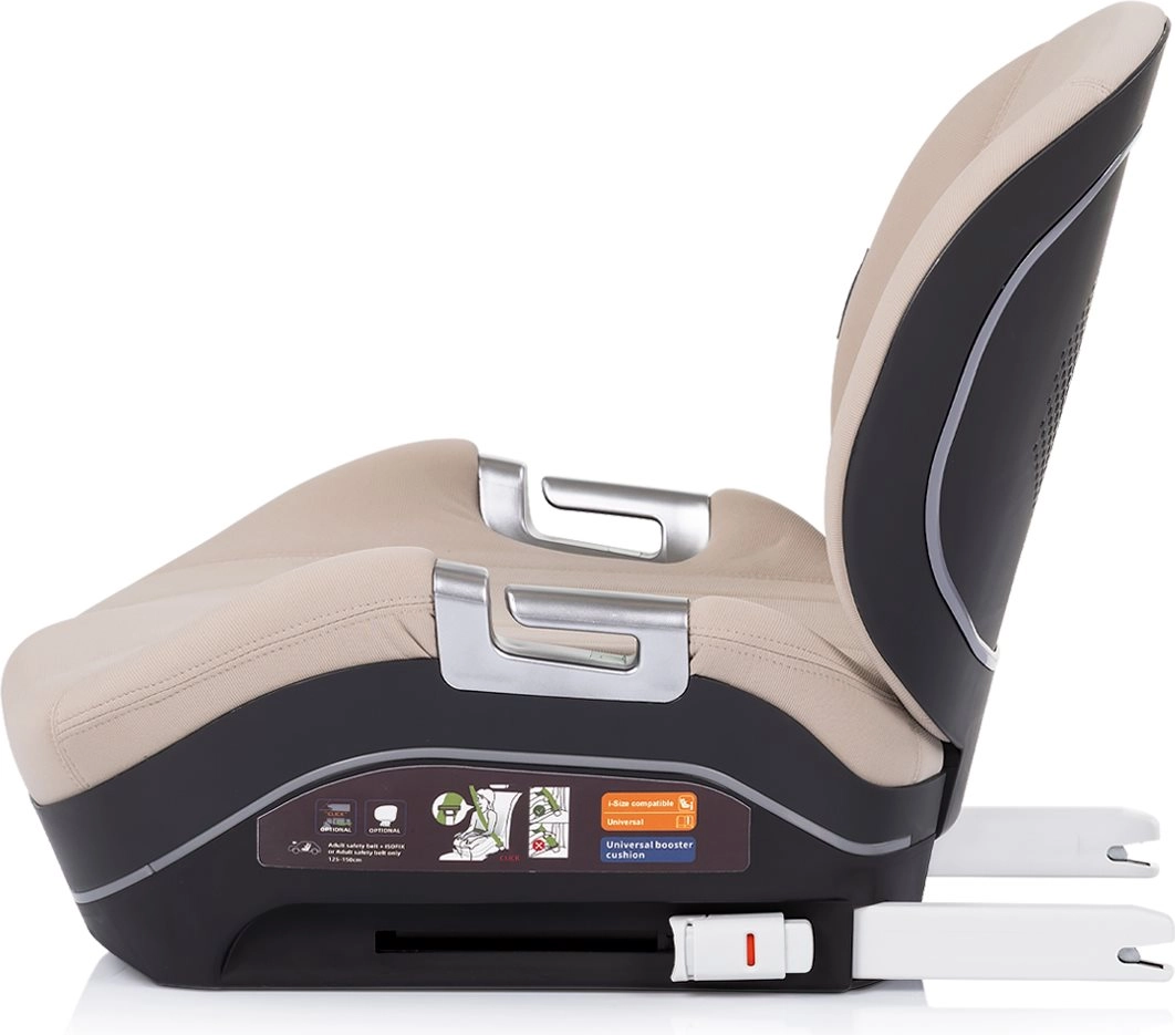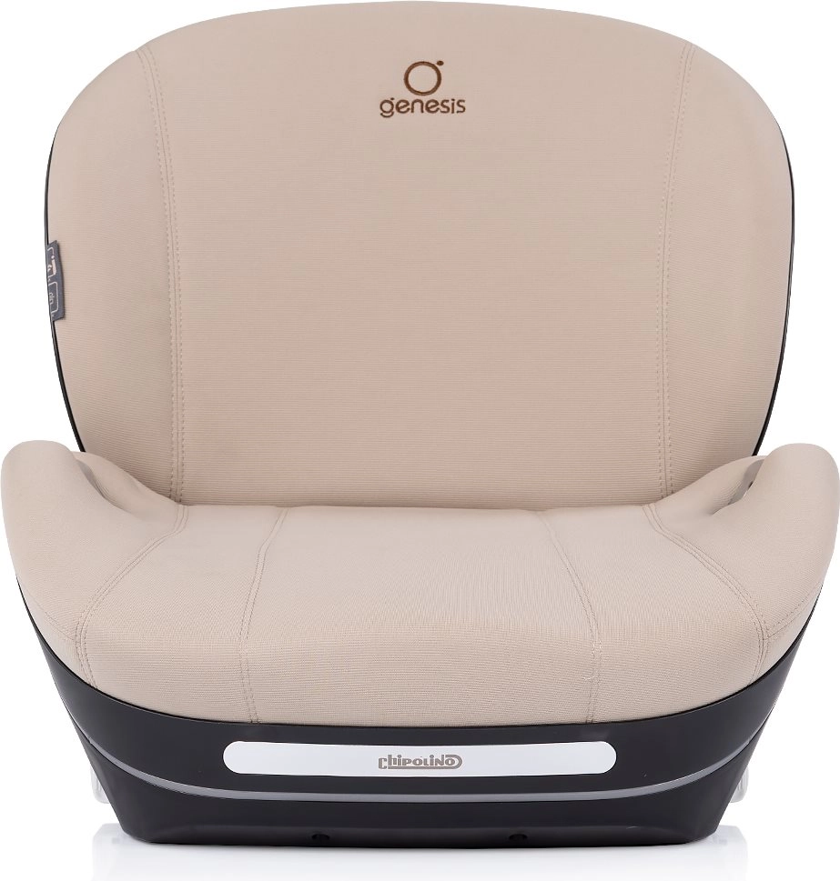The modern CHIPOLINO Genesis i-Size car booster seat offers safe elevation for children 125–150 cm with the option of ISOFIX mounting or seat-belt-only use. Thanks to the belt guides, the vehicle seat belt is routed correctly, while the ergonomic shape, soft padding, and armrests ensure comfort. Green indicators confirm proper latch engagement. The Latte upholstery is complemented by elegant metal details. Certified to ECE R129 (i-Size) for peace of mind on every journey.