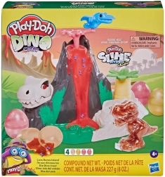 Play-Doh Dino Crew lava island with volcano and HydroGlitz eggs