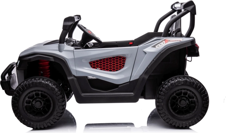 The Gravity 4x4 buggy is a fantastic two-seater for young adventurers. A high chassis with up to 17 cm ground clearance, rear suspension, and large EVA wheels (34 × 13 cm) ensure a comfy ride even off paved roads. Smooth start, selection of forward/reverse, and 2 speeds make driving intuitive and fun.