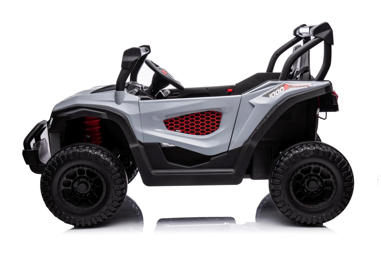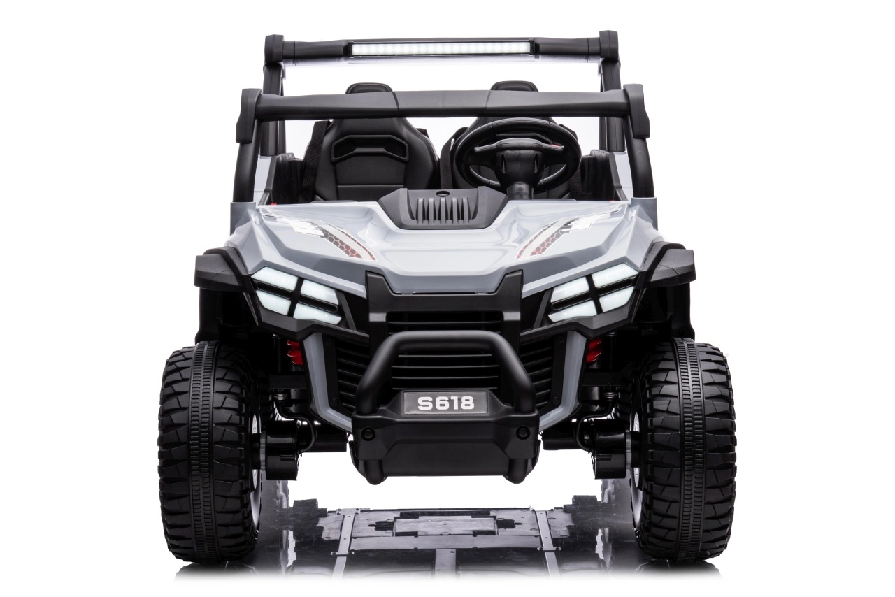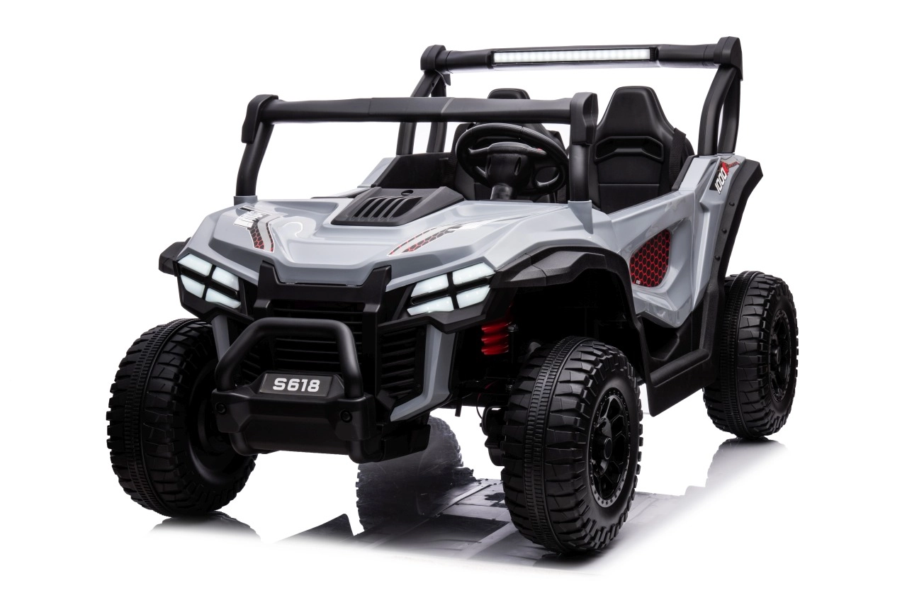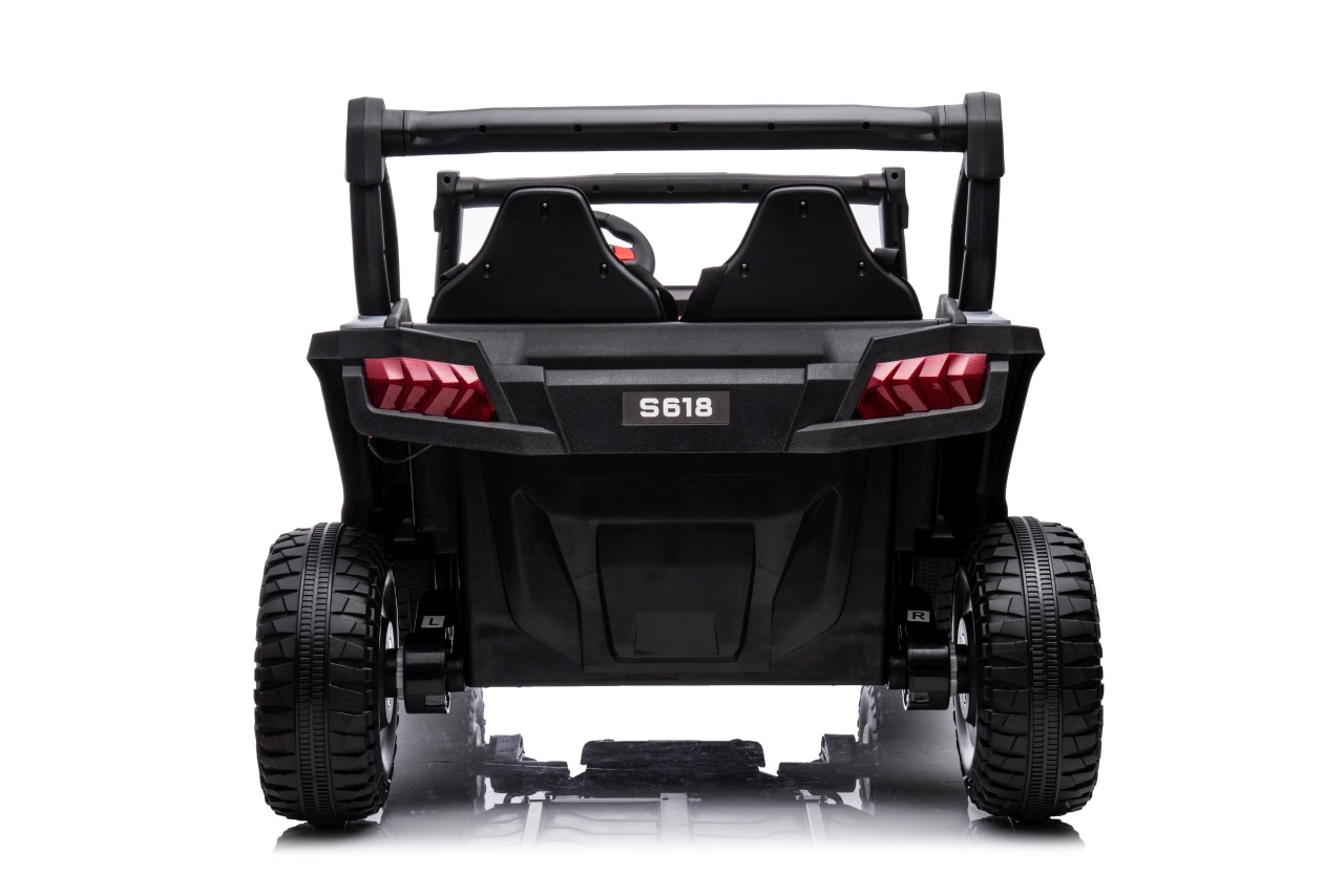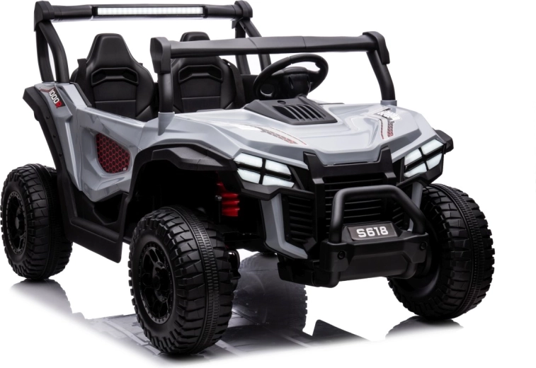 A robust kids' electric off‑road-style buggy delivers an awesome ride on rough terrain and in the yard. Thanks to powerful 2×80 W motors and a 24 V 7 Ah battery, it tackles bumps with ease, while EVA foam wheels, front LED lights, and opening doors add a realistic feel. Safety and comfort are ensured by a eco‑leather seat with seat belts and a parental 2.4 GHz remote control with a STOP button.