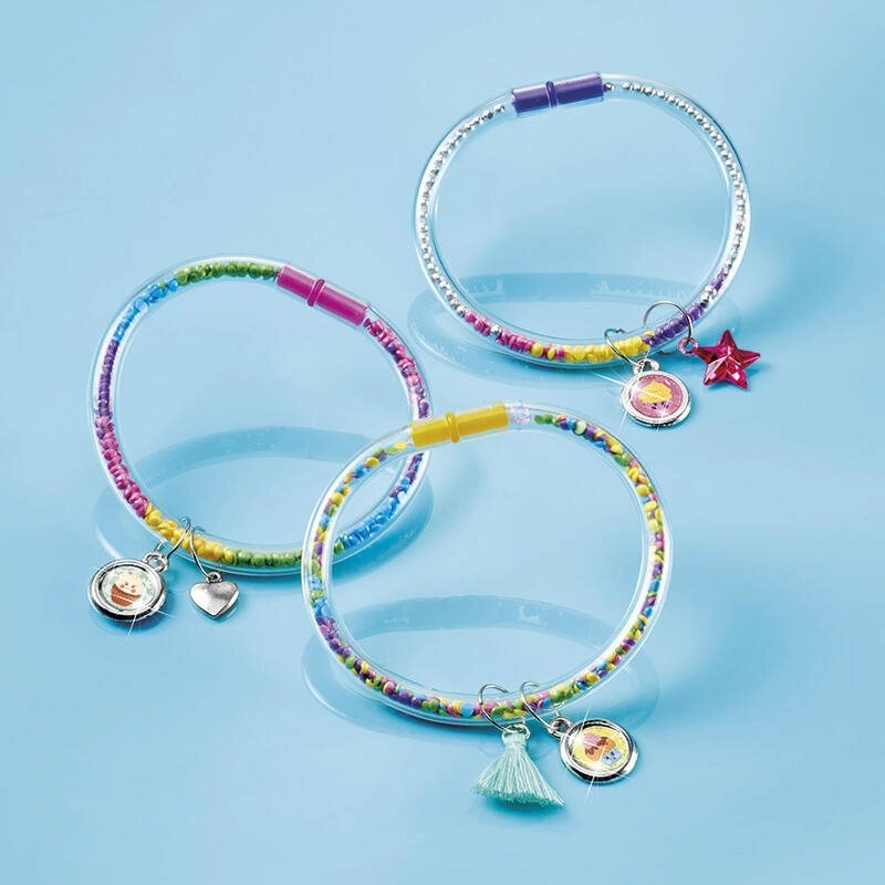 Create original bracelets full of sparkle and imagination. This creative kit offers a rich selection of components—from rhinestones and charms to tube bracelets and closures—so you can easily assemble unique jewelry to match your style.