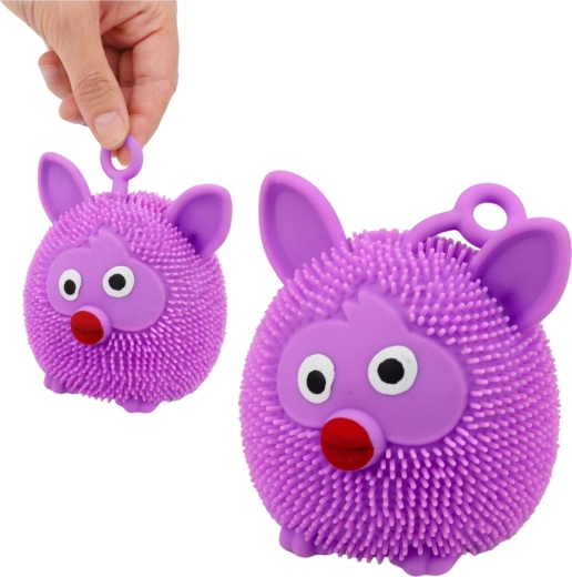 Fun sensory squishy toy in the shape of an animal, made of soft, stretchy material for kids and adults. When bounced or squeezed, a colorful LED light flashes, while the soft spikes provide pleasant tactile stimulation and stress relief. Compact size, a practical loop for holding or hanging, and a mix of colors delivered at random.