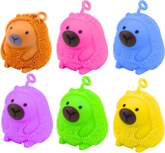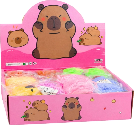 A cute capybara as a sensory anti-stress ball made of soft, elastic material that relieves tension perfectly. On impact, a color LED activates, flashing to encourage play. Thanks to the gentle protrusions, it stimulates touch and can be squeezed, stretched, and bounced. A practical loop makes it easier to hold and supports the development of coordination. Supplied in a mix of colors chosen at random.