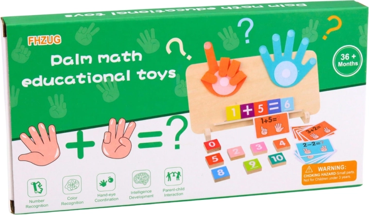 This quality wooden tool teaches children to count using finger visualization. The rotating palms clearly represent numbers, while colorful wooden pieces with numerals and math signs let kids build simple equations. It also includes double-sided cards with tasks that increase in difficulty.