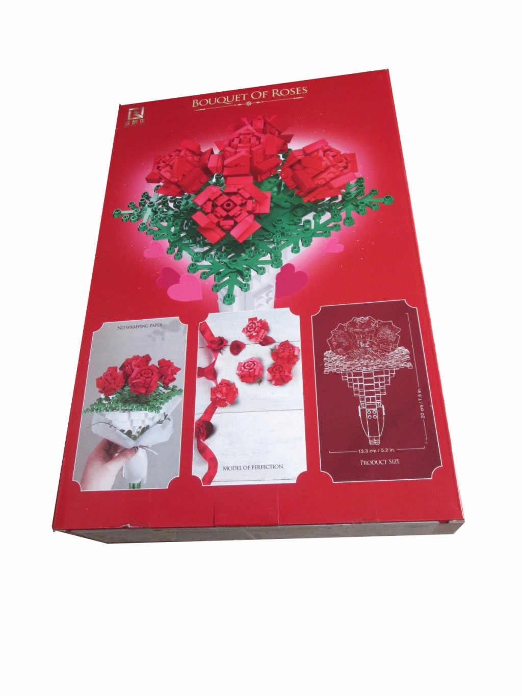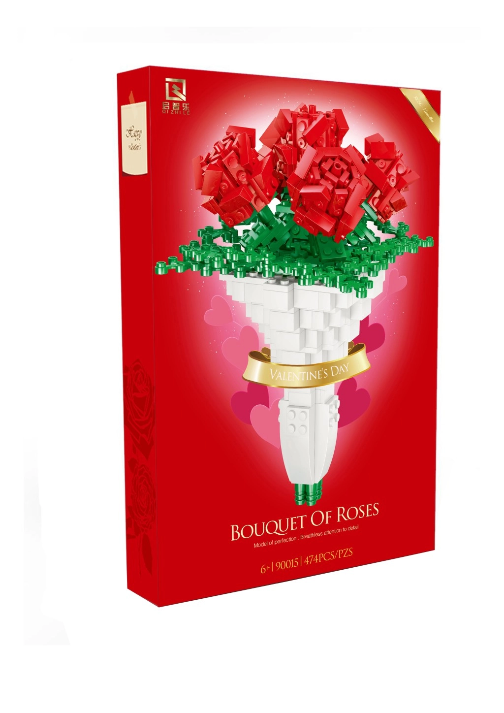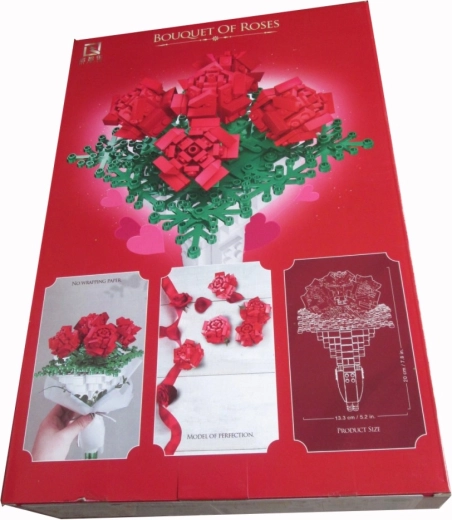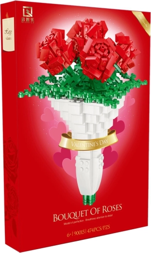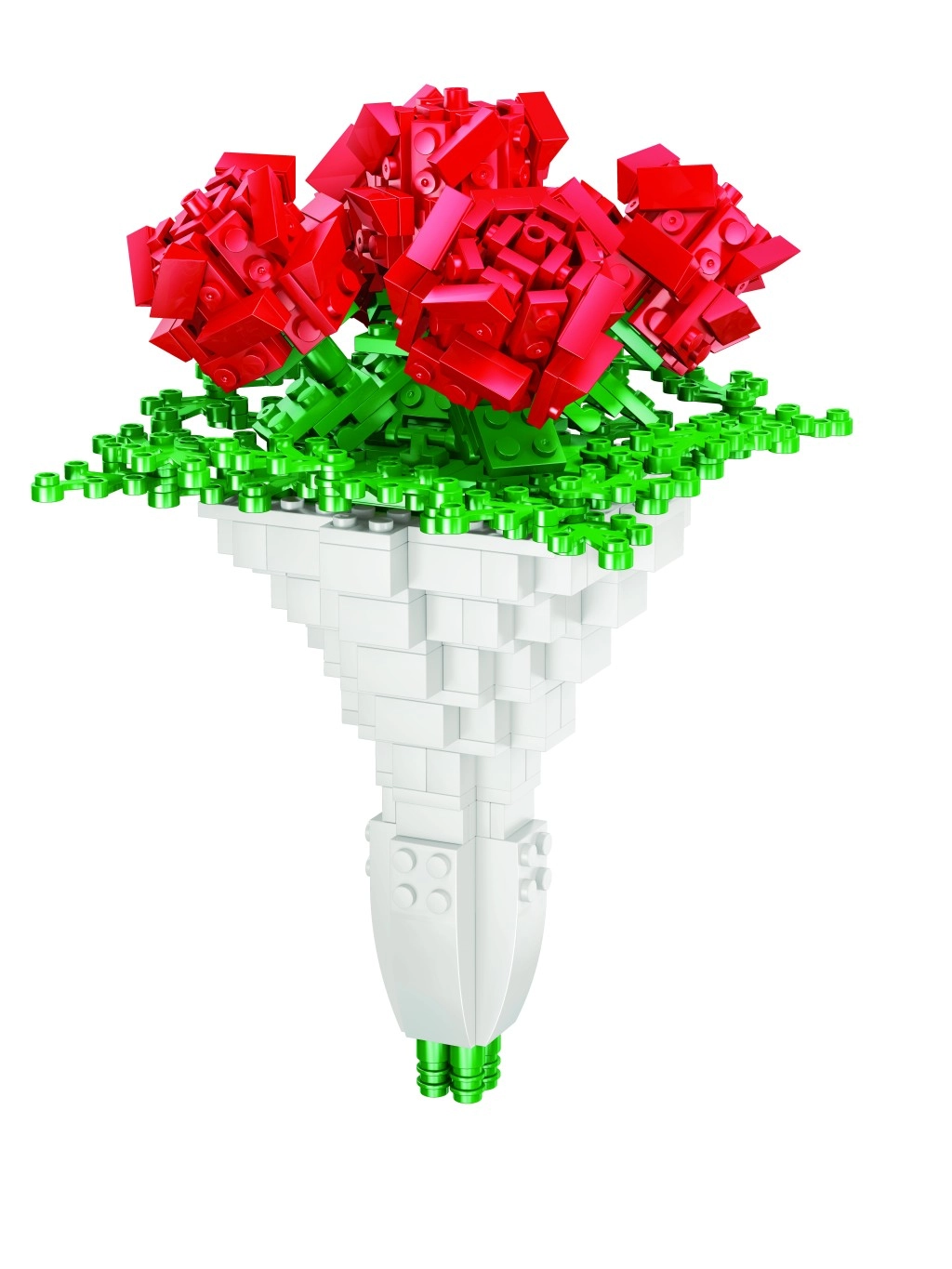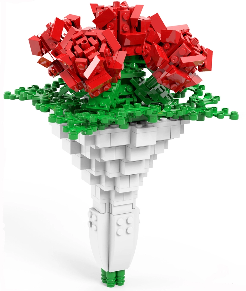 Relax while building and create a floral decoration at home without worrying about watering. The rose bouquet, inspired by real flowers, offers finely shaped petals, green leaves, and an elegant white bouquet “wrapper.” The finished model is ideal for a shelf, table, or a child’s room.