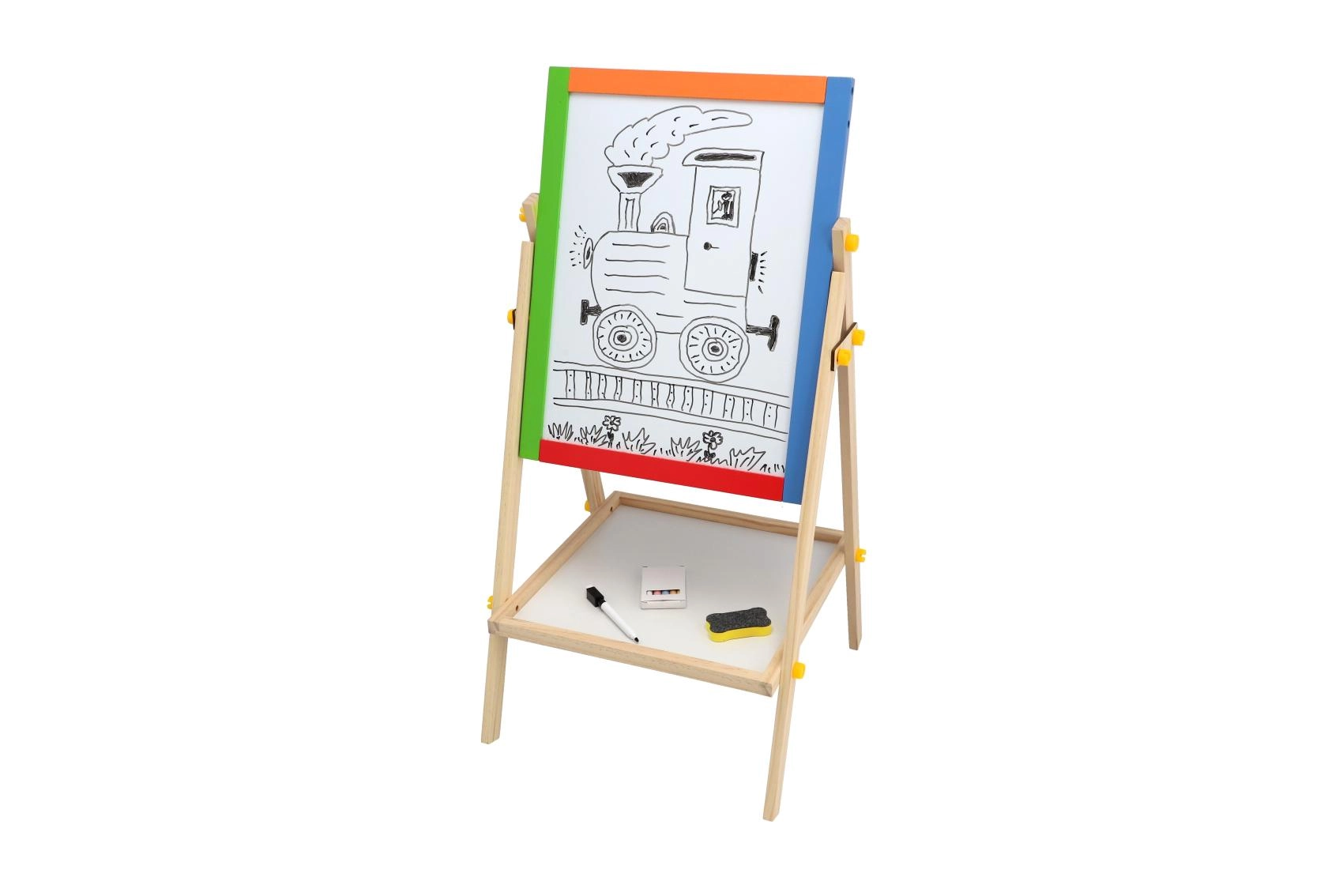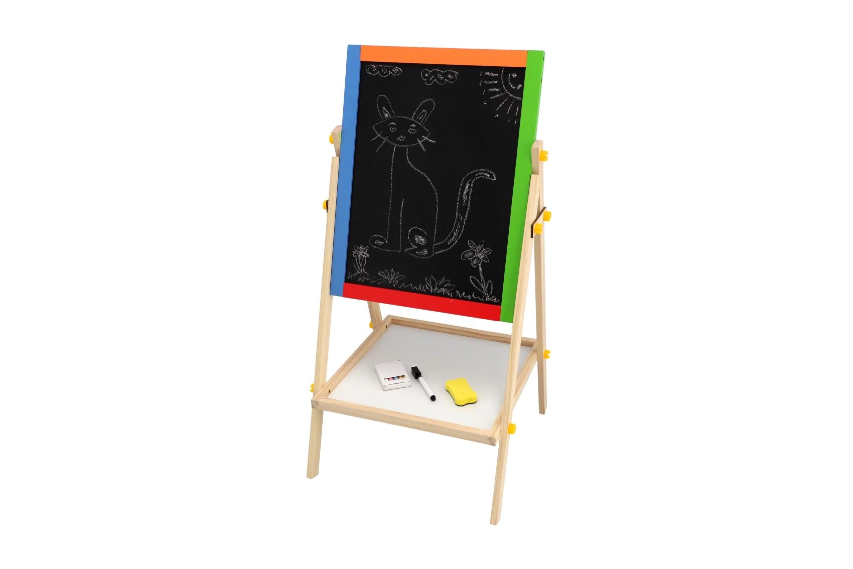 This double-sided board supports creativity, fine motor skills, and early school abilities. Kids can switch between drawing with chalk and writing with a marker, learn letters with magnets, and practice counting—all in one place.