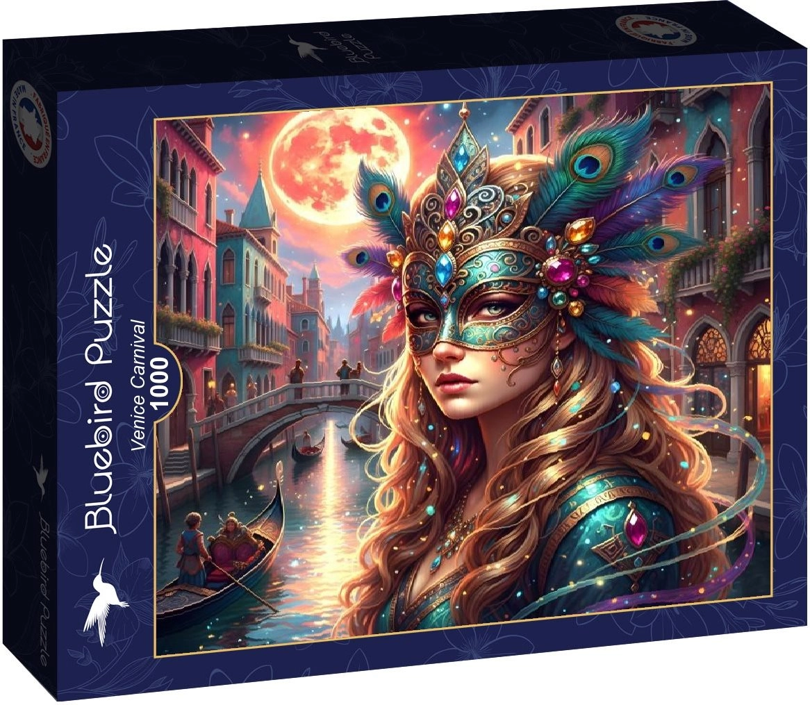 Enjoy calming assembly with an elegant Venice theme. The Bluebird puzzle with 1000 pieces in an unconventional square format is a great choice for advanced puzzlers and enthusiastic beginners alike. Precisely cut pieces and rich colors support smooth assembly and an impressive result.