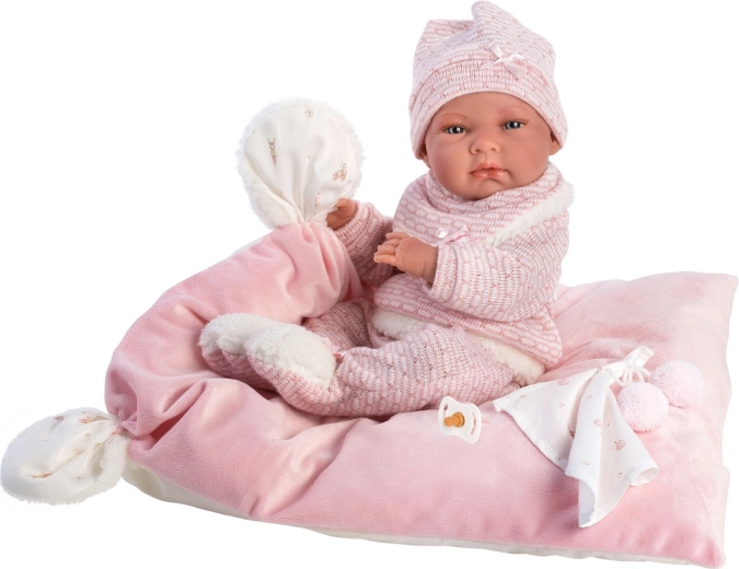 This stylish, warm doll clothing set brings everything little caregivers need: soft knitted pieces with gentle faux fur, a cute pompom lovey, and a decorative pillow that also works as a comfy play mat. Designed for Llorens NEW BORN dolls sized 40–42 cm.