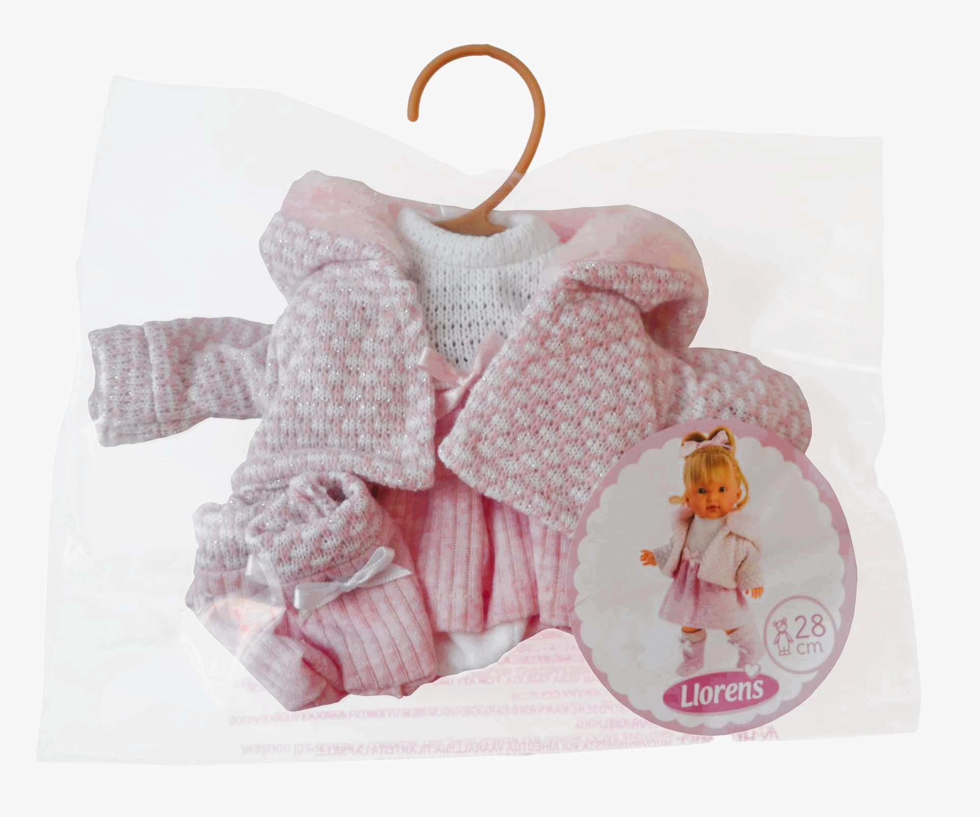 A stylish 4-piece outfit for a 28 cm Llorens doll will delight every little caregiver. Handmade in Spain with an emphasis on quality and detail, delivered in a practical hanger bag. An ideal accessory to expand a doll’s wardrobe and support creative play and fine motor skills.