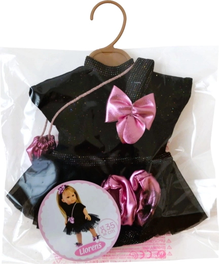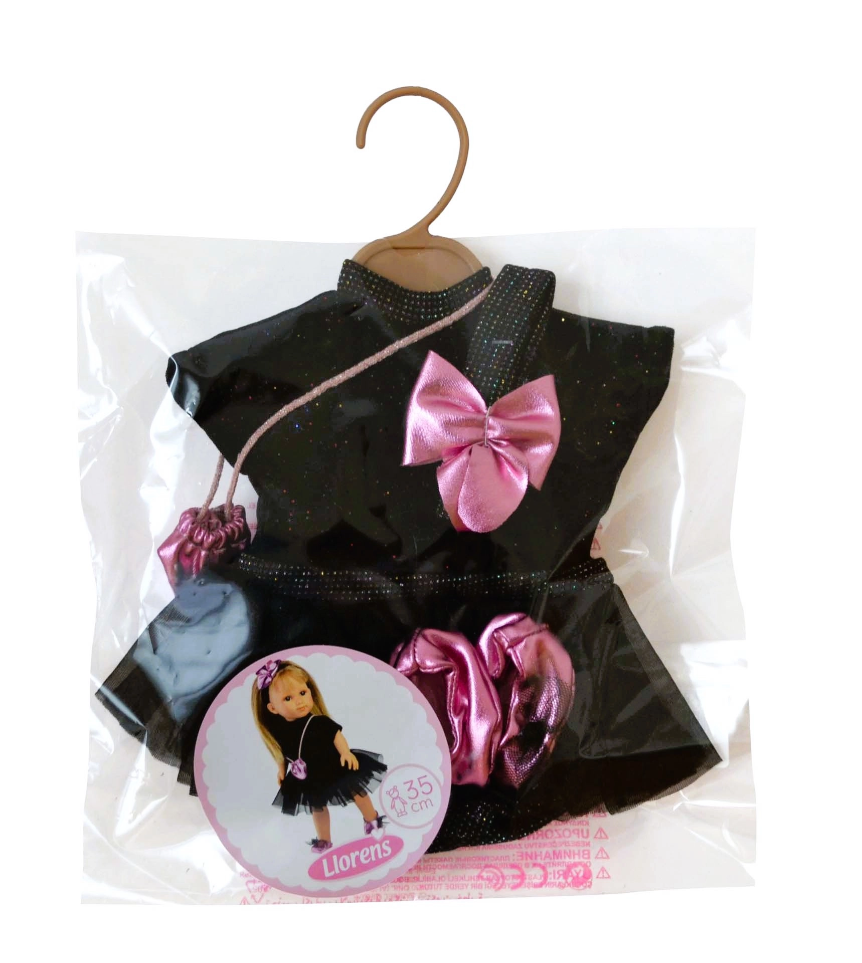 Treat your doll to a stylish outfit with this 5-piece set for Llorens 35 cm dolls. Handcrafted in Spain, it includes 3 clothing items, a decorative hair elastic with bow, and a handbag. High-quality workmanship, easy dressing, and ideal for creative play for children aged 3 and up.