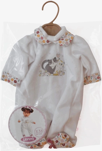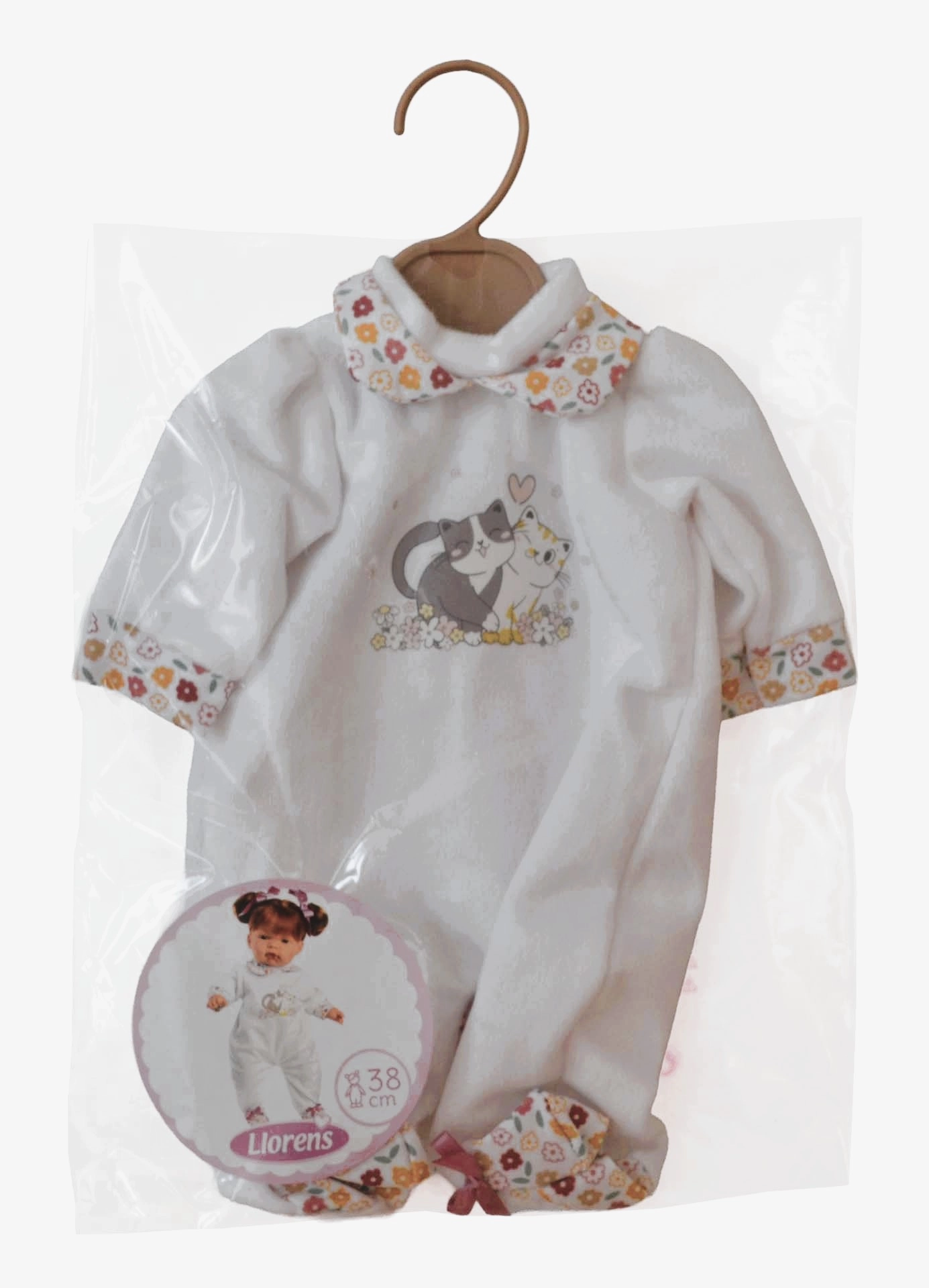 Stylish one-piece outfit for a 38 cm doll by LLORENS, handmade in Spain. Fits dolls of this size perfectly and is ideal for creative play and dress-up. Supplied in a plastic cover with hanger. Suitable for children from 3 years.