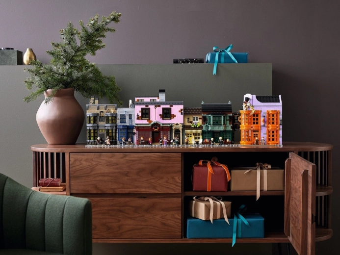 Thanks to the modular construction, you can rearrange, expand, and create your own version of the street. The set is perfect for collectors, home display, and hours of imaginative play. Also included are the legendary entrance to the Daily Prophet office and hand-operated elements like the famous moving hat above the entrance to Weasleys’ Wizard Wheezes.