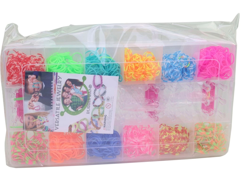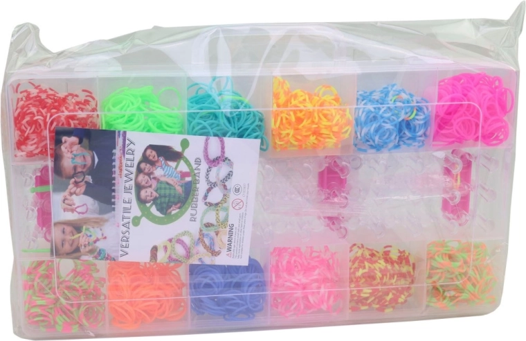 Discover the world of crafting with this rich rubber band set that offers everything you need to make original accessories. The transparent box with 12 compartments keeps colors neatly separated and prevents mixing, so you can fully focus on creativity.