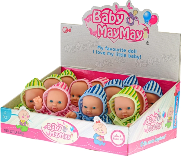 Adorable baby with a sturdier little body and a soft striped hooded bathrobe will delight every little caregiver. Thanks to the compact 20 cm size, it’s ideal for children’s hands, supports imagination and role play, and is available in three color variants.