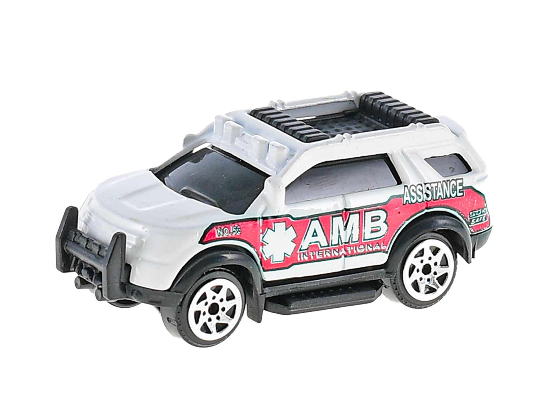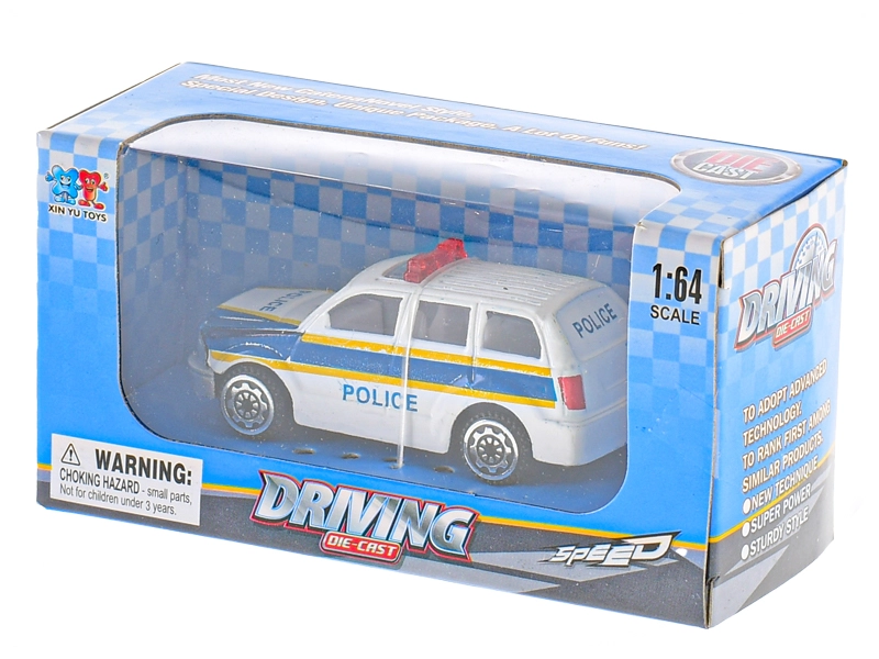 Discover the fun with this set of metal police vehicles in 1:64 scale, offering six different models for realistic play. With a compact length of 7–8 cm and free-rolling wheels, they are ideal for children’s hands. Precise metal construction, detailed design, and a variety of vehicle types support creative play and collecting passion.