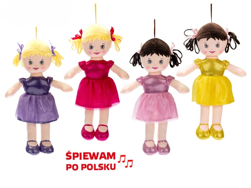 Adorable rag doll Tosia, 32 cm tall, talks and sings in Polish. Made from soft and safe materials, ideal for babies from birth. Thanks to the phrase and song playback function (including “Mam chusteczkę haftowaną”), it supports language development and musical awareness. Available in 4 color variants and packed in a practical bag.