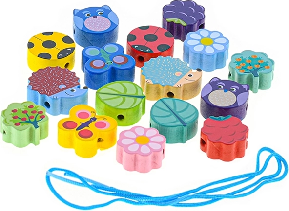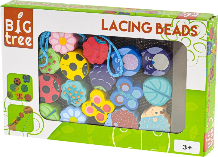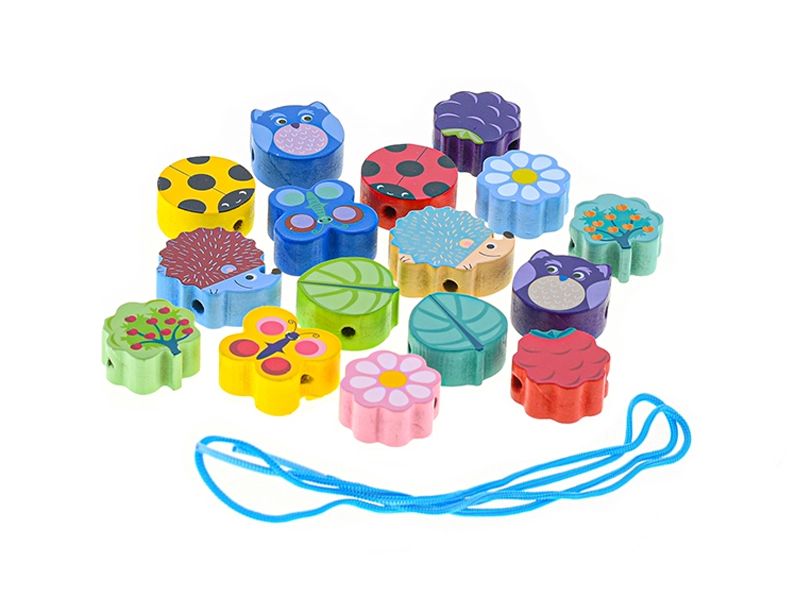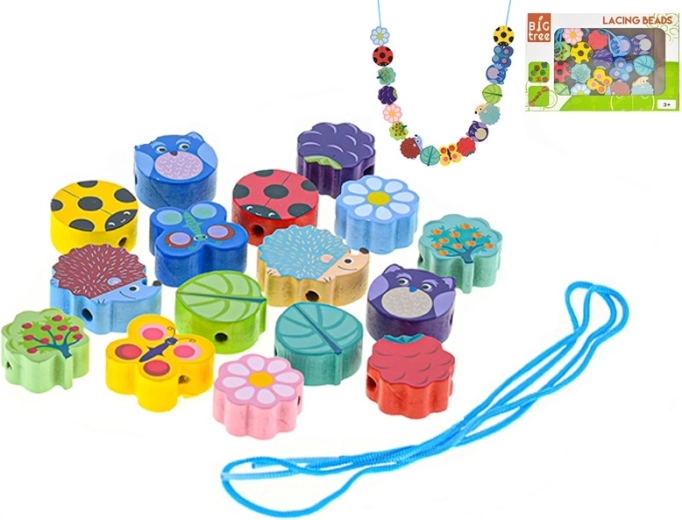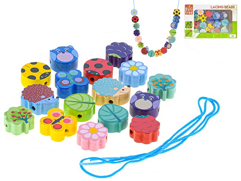 Discover a fun set of wooden lacing beads for children from 3 years old that supports fine motor skills, hand–eye coordination, and creativity. The set of 17 carefully crafted beads in various shapes and colors, including animals, flowers, and fruit, offers hours of meaningful play. Safe design with a smooth surface and a practical box for easy storage and transport.