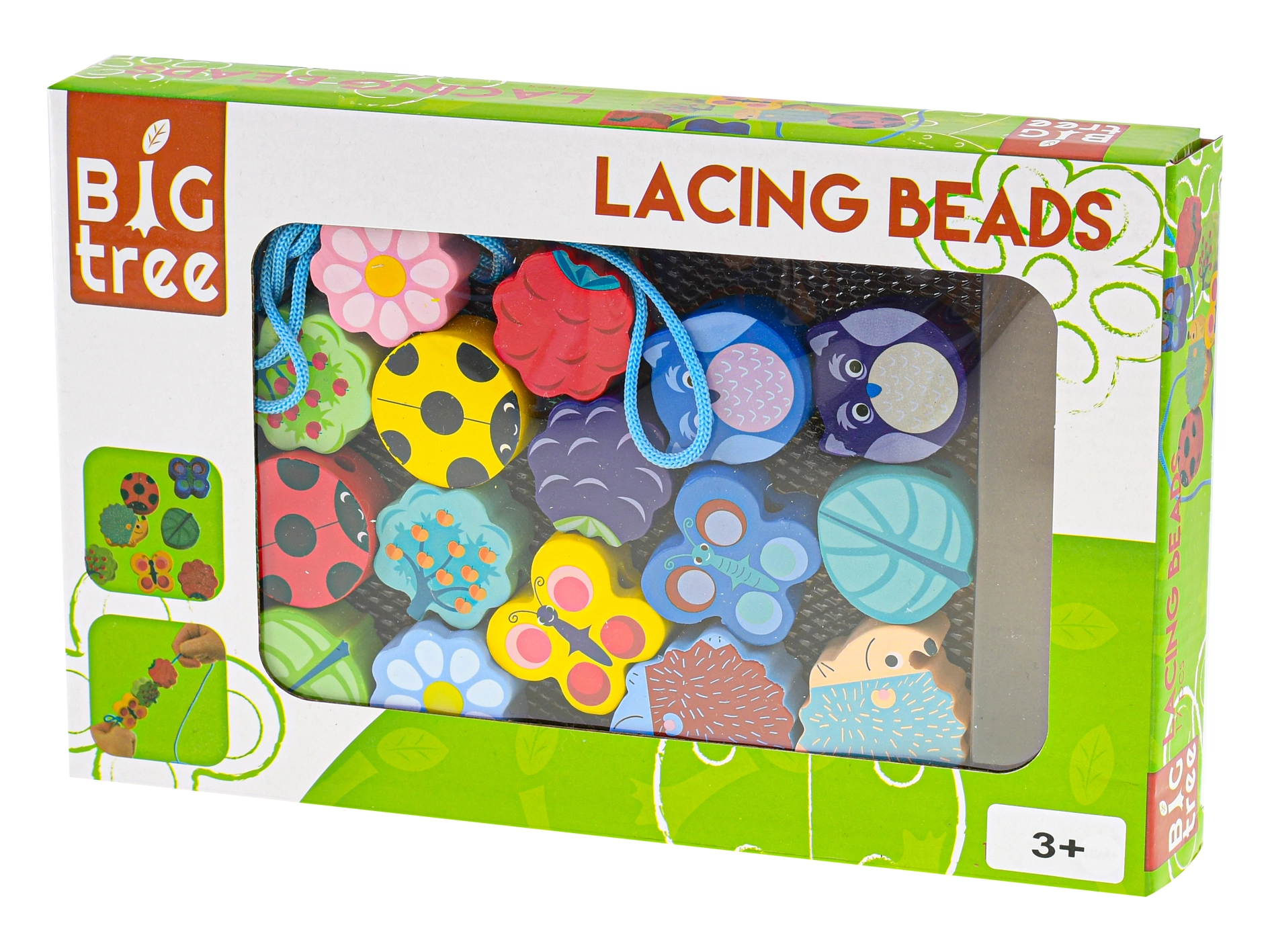 The Big Tree wooden beads set is an ideal toy for first crafting activities. Children can thread different shapes and colors according to their imagination, developing patience, concentration, and basic logical thinking. High-quality wood with a smooth surface and safe finish feels pleasant in small hands and withstands everyday use.