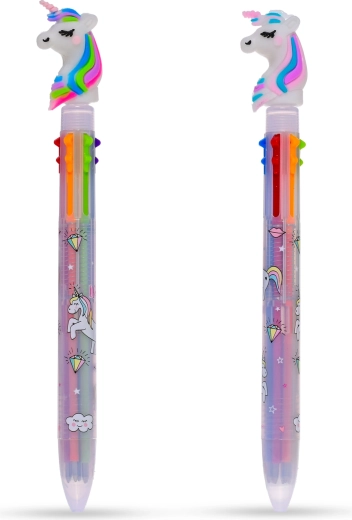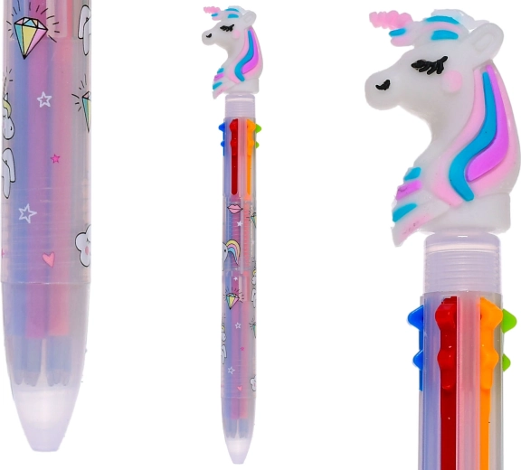The rainbow pen with a unicorn is a great choice for young creators who love color and imagination. With a clever mechanism, you can easily switch between six colors in one pen to liven up notes, drawings, and school projects. The lightweight, durable plastic construction ensures a comfortable hold even for smaller hands.