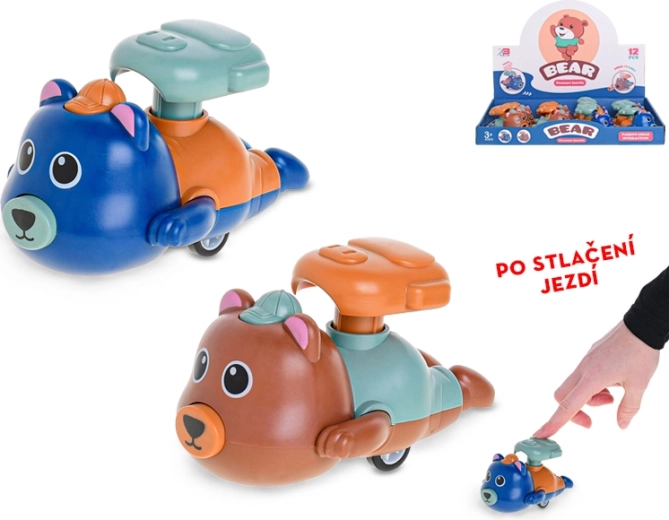 This cute 11 cm push-and-go bear will delight every little child. When you press the top, the bear moves forward on its own thanks to a mechanical drive with no batteries. Made from durable, high-quality plastic and available in two colors – blue and brown. Suitable for children aged 3+.