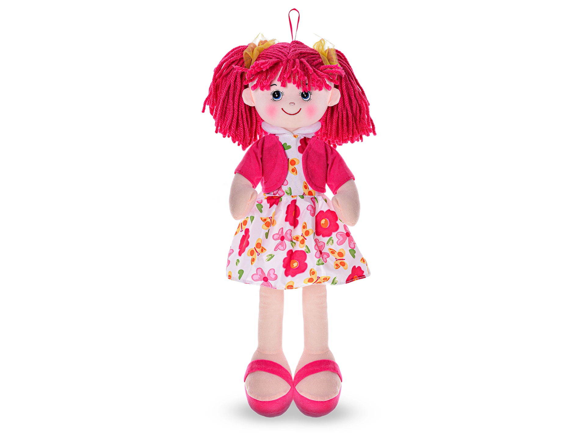 The doll is made of soft textile, pleasant to the touch and safe for babies. Thanks to the red outfit, she stands out at first glance and becomes a favorite companion for the stroller and crib. Batteries (3× AG13) are already included, so the doll is ready for immediate use.