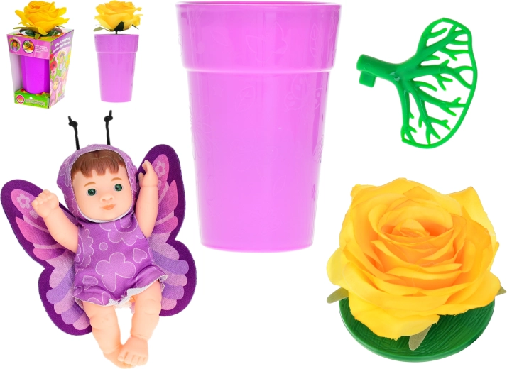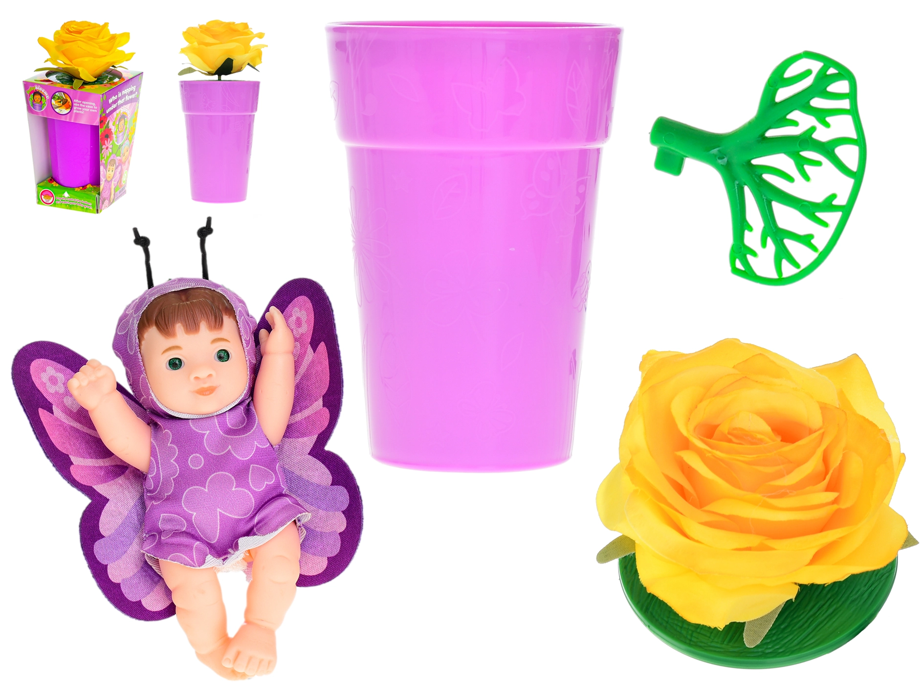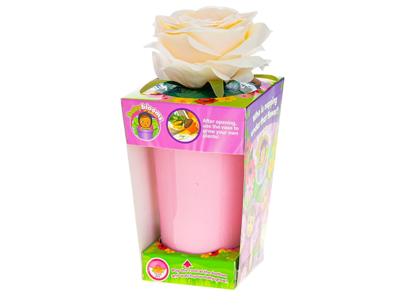 Discover the magic of the collectible Babyblooms Baby Doll hidden in a decorative flowerpot. Inside you’ll find an adorable 12.5 cm doll, a decorative bracelet, and a flower – an ideal gift for children aged 3+. The flowerpot opens with a key on the bottom for repeat play, offers 12 different variants of names and colors, and beautifully decorates a child’s room.