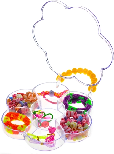 This playful set is ideal for little stylists who love original hairstyles and creating their own hair decorations. Thanks to the wide range of shapes and colors, kids can mix and match beads and accessories to create unique styles exactly as they imagine. Everything is stored in a clear box that makes organizing and transport easy.