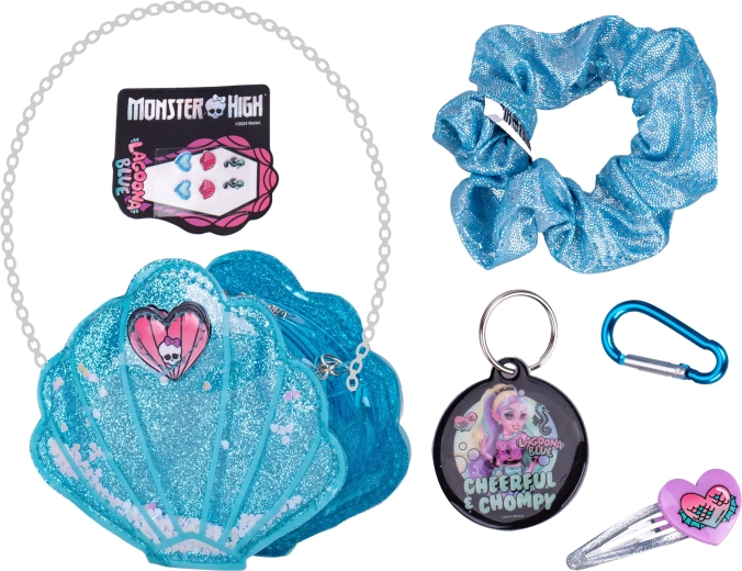 A stylish mini handbag for young MONSTER HIGH fans brings both fun and fashion flair. Available in three designs – shell, lightning bolt, and heart – each variant includes themed accessories such as keychains and hair decorations. Thanks to its compact size, it’s perfect for play, collecting, and wearing. Made from high-quality plastic, suitable for children aged 5 and up.