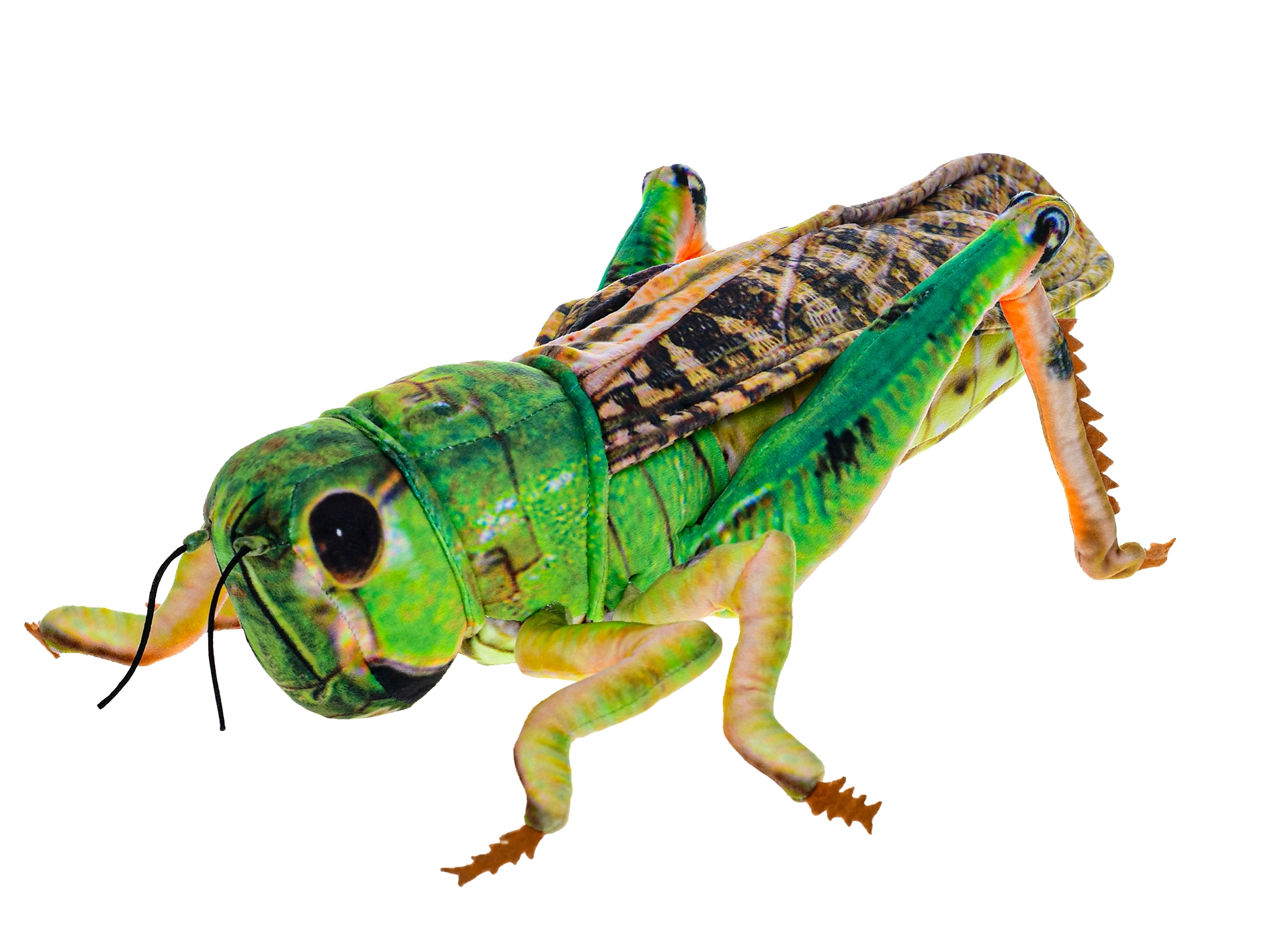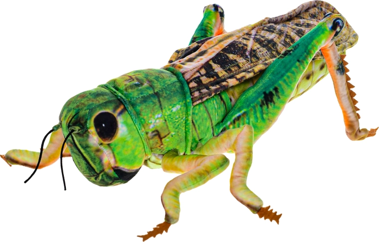 A cute 40 cm plush grasshopper will delight children and nature lovers alike. It is made of soft, pleasant plush, features realistic details, and a standing design that supports imagination and creative play. Great for cuddling, play, and as a kids' room decoration. Suitable from birth.