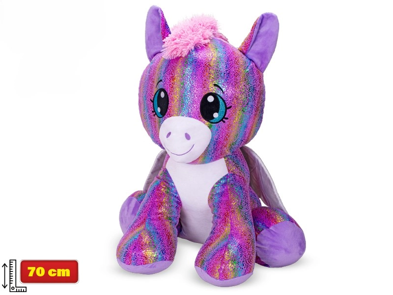 Discover a magical companion for kids – the plush pegasus Star Sparkle standing 70 cm tall. Ultra-soft plush fabric, sparkling details, and a sitting pose make it perfect for cuddling and a beautiful nursery or kids’ room decoration. Suitable from birth.