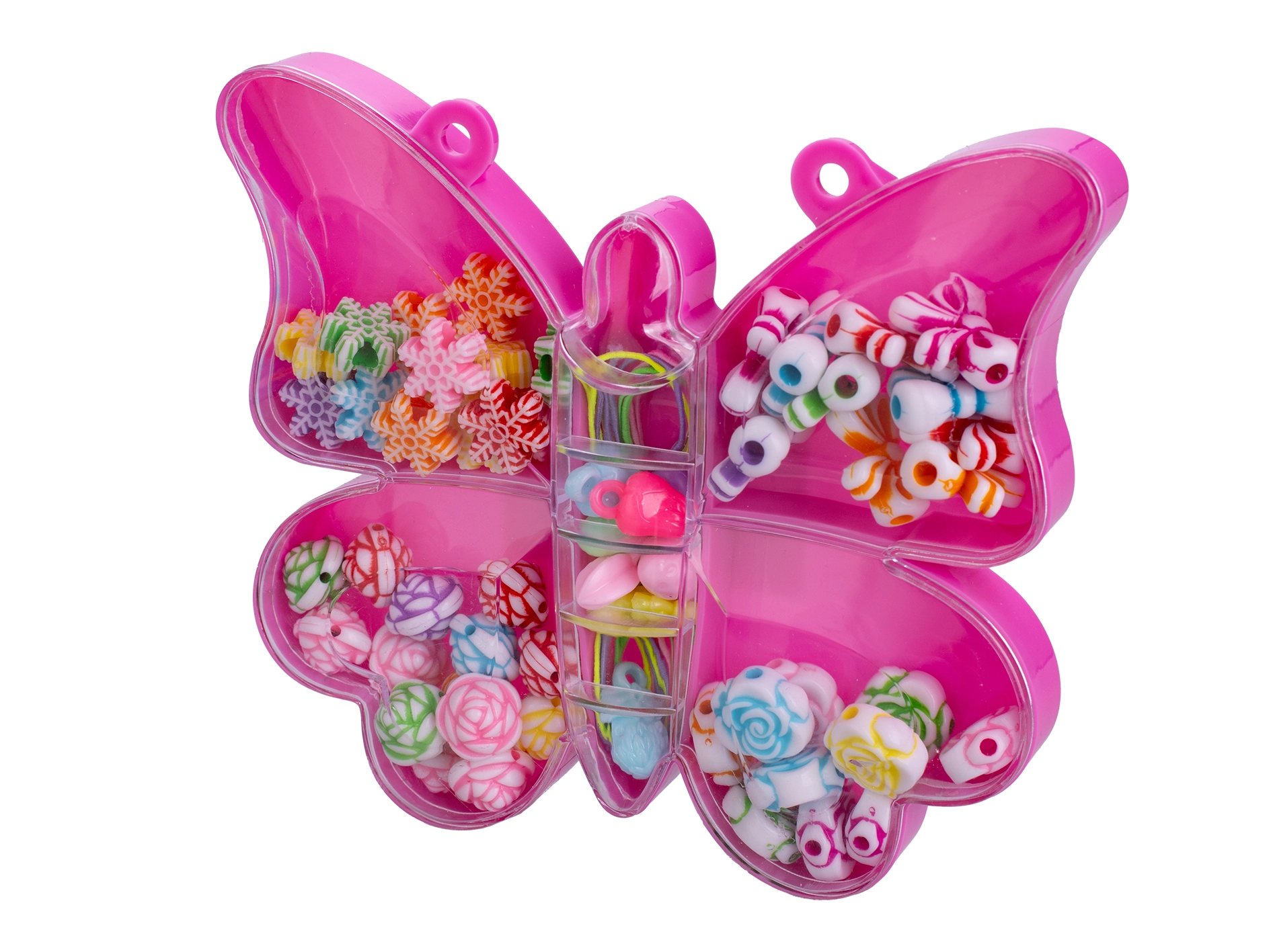 Discover a fun set of threading beads that lets children aged 3+ create their own jewelry and decorations. The set includes 20 colorful beads in the shapes of butterflies and shells, stored in a practical box for easy carrying. Crafting supports fine motor skills, patience, and creativity.