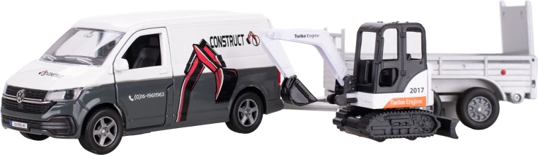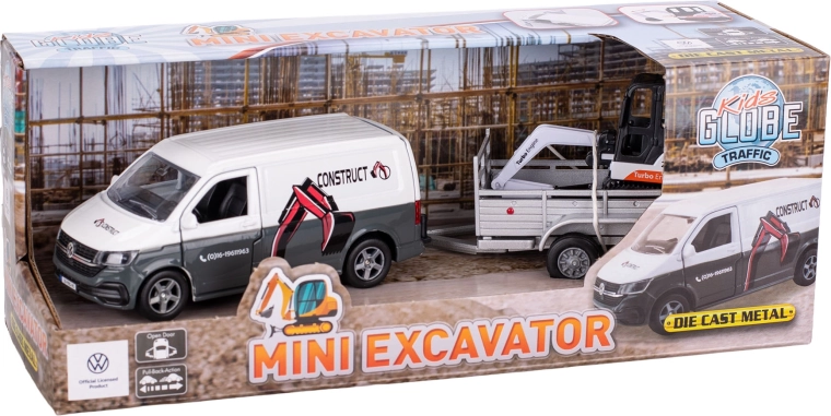 Kids Globe Traffic VW Transporter with Trailer and Mini Excavator