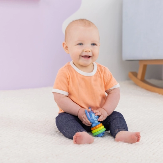 Discover the playful sensorimotor toy Twist‑a‑Stitch, which captivates babies with bright colors and the adorable DISNEY STITCH motif. Children can twist textured rings with a satisfying clicking sound and shake the toy like a rattle. It supports fine motor skills, visual and auditory stimulation, and thanks to its lightweight, compact design it’s ideal for travel.