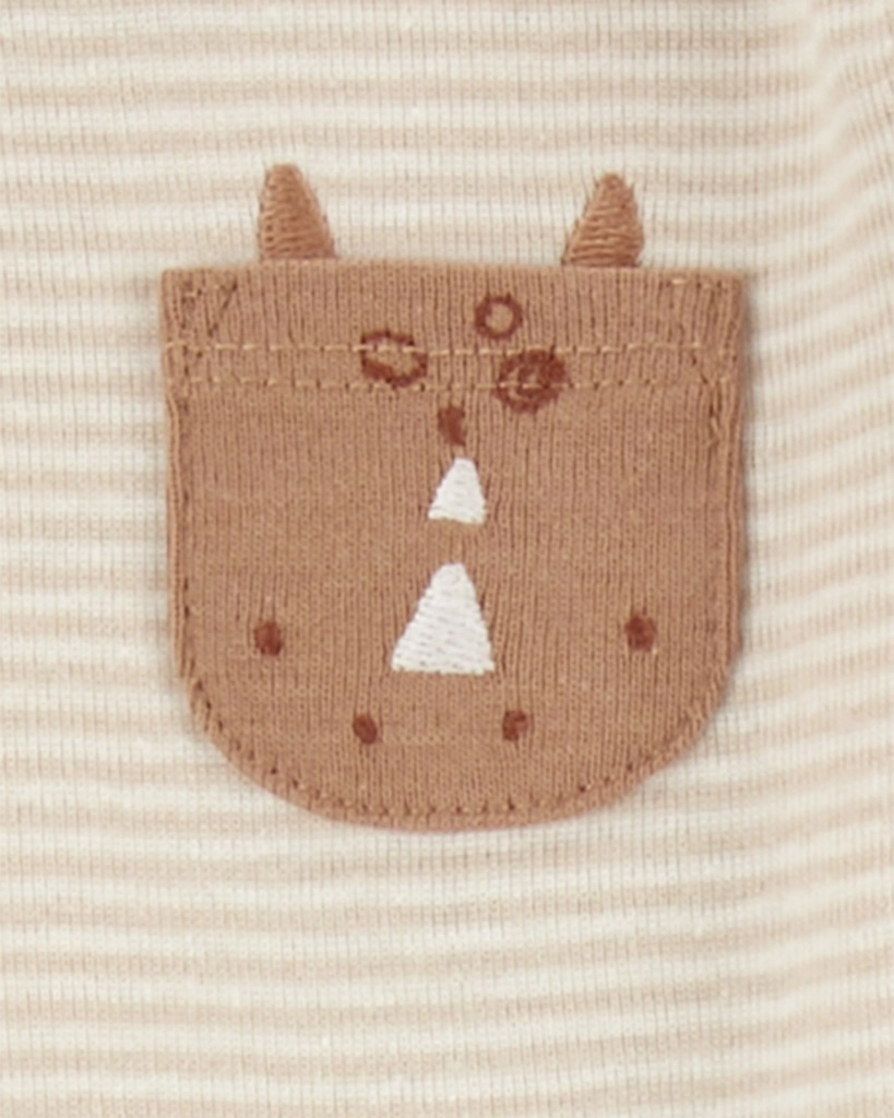 This set of 4 long-sleeve baby bodysuits in modern navy and olive tones with cheerful animal motifs is designed for maximum comfort for the smallest ones. The soft, breathable, and gentle-on-sensitive-skin 100% cotton ensures all-day comfort, while the durable reinforced neckline maintains its shape even after frequent washing.