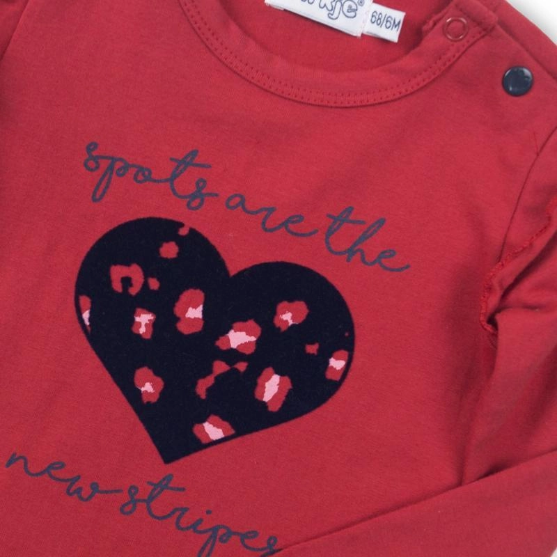Looking for a comfortable yet stylish tee for a little fashionista? The DIRKJE girls’ T-shirt in red offers a soft, flexible fabric with a touch of elastane for free movement all day long. Elegant ruffles and a subtle heart add a gentle, playful touch to the outfit.