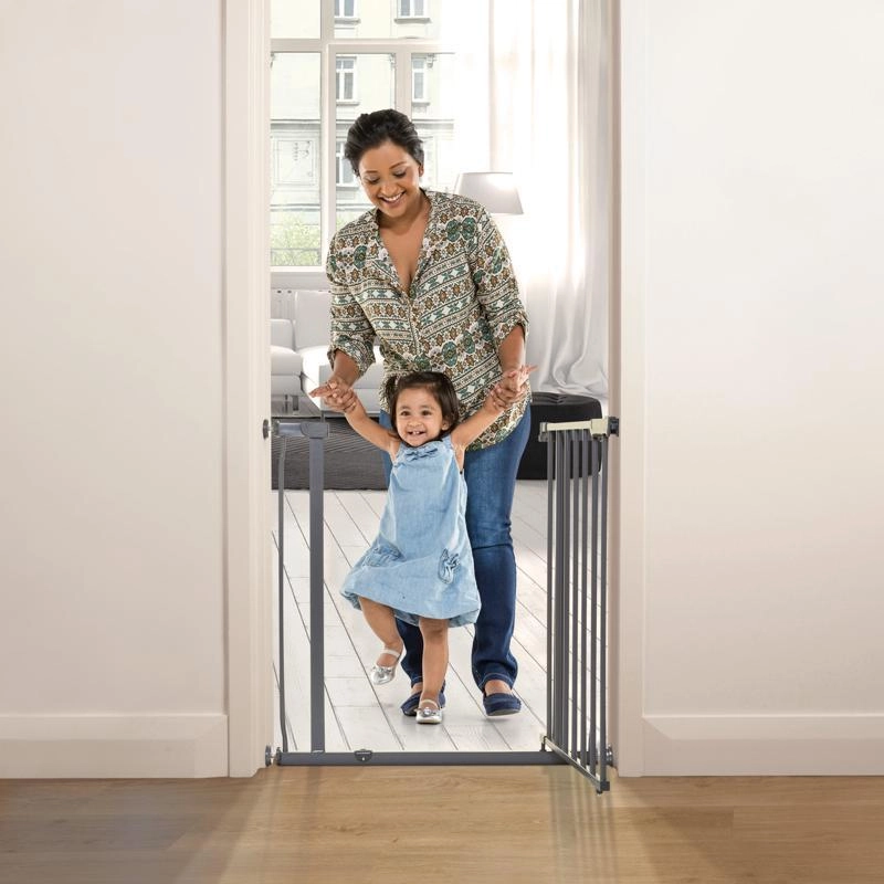 - Metal safety gate for doors, hallways, and stairs