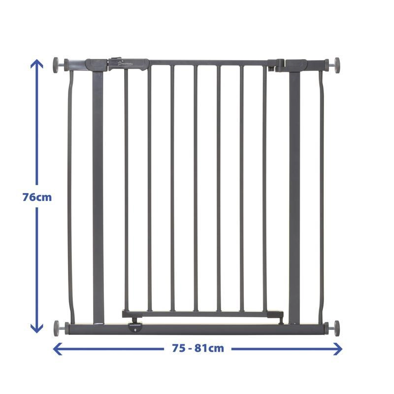 Keep your home safe for children and pets with the Dreambaby Ava gate. A durable metal construction, no-drill pressure installation, and one-handed opening ensure convenient everyday use. Fits openings 75–81 cm with the option to extend up to 99 cm. Two-way opening, a wide walkthrough, and a stay-open feature make this gate a practical helper for doors, hallways, and stairs.